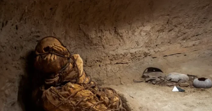 Segundo os arqueólogos chamados ao local, os restos mortais estavam enterrados na posição sentada e envoltos em um fardo funerário, com parte dos cabelos ainda preservada. A descoberta foi feita na semana passada, em meio a uma área urbana da capital peruana.