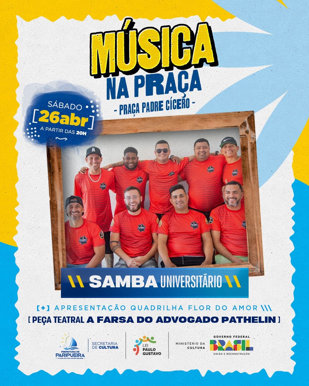 As atrações culturais desta semana foram viabilizadas com apoio da Lei Paulo Gustavo, voltada ao incentivo do setor cultural em todo o país.