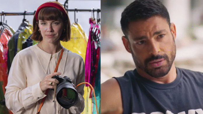 Alice Wegmann falou sobre sua relação com o colega de elenco em “Vale Tudo”, Cauã Reymond que recentemente se envolveu em polêmicas de bastidores • 1: Globo/Fábio Rocha; 2: Globoplay/Reprodução