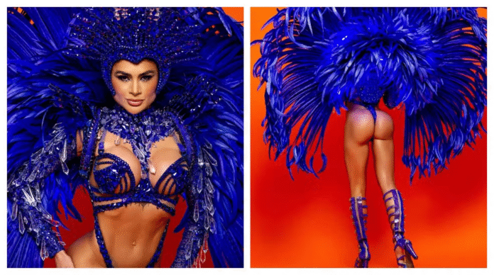 A influencer e bailarina Natacha Horana, musa da Gaviões da Fiel, com a fantasia que desfilou no último sábado (14), no sambódromo do Anhembi, na Zona Norte de São Paulo | Foto: Reprodução/Redes Sociais