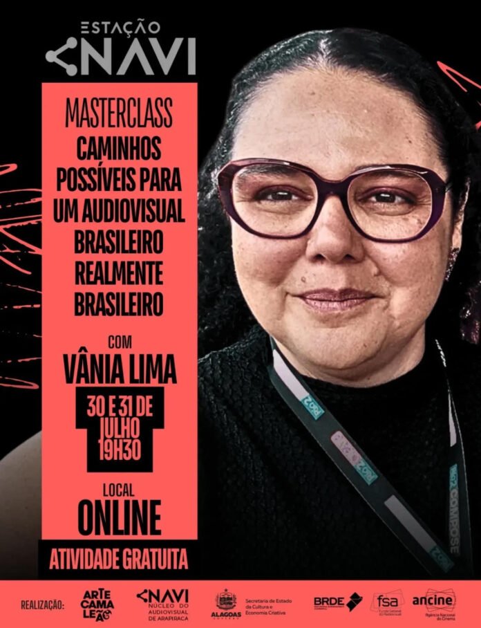 Com o objetivo de fortalecer o audiovisual nacional e promover formações acessíveis, o Núcleo do Audiovisual de Arapiraca (Navi) promove nos dias 30 e 31 deste mês, às 19h30, a masterclass “Caminhos possíveis para um audiovisual brasileiro realmente brasileiro”, ministrada pela premiada produtora e estrategista Vânia Lima. A atividade é online e gratuita, com inscrições disponíveis aqui.