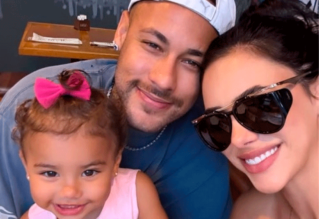 Neymar ao lado da companheira e da filha