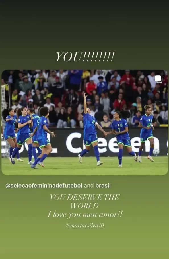 Noiva de Marta faz homenagem após vitória da seleção na Copa América — Foto: reprodução/ instagram