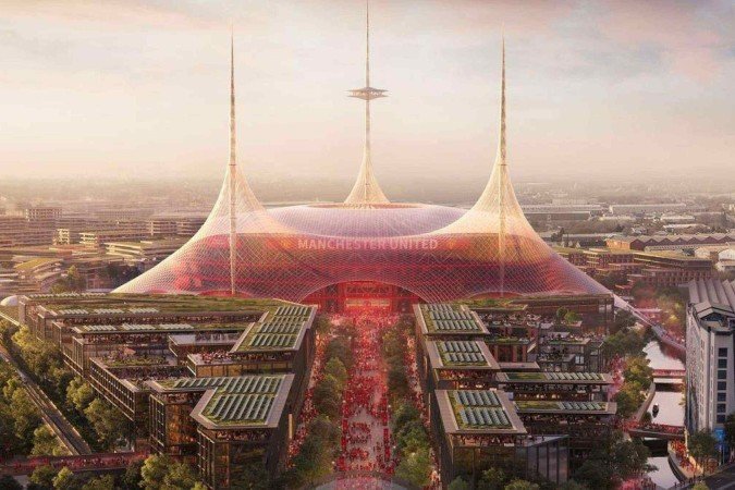 Manchester United anunciou nesta terça-feira (11/3) planos para construir o maior estádio do Reino Unido — um novo estádio “icônico” com capacidade para 100 mil pessoas, que vai custar £2 bilhões (cerca de R$ 15 bilhões), próximo ao Old Trafford, atual estádio do clube.