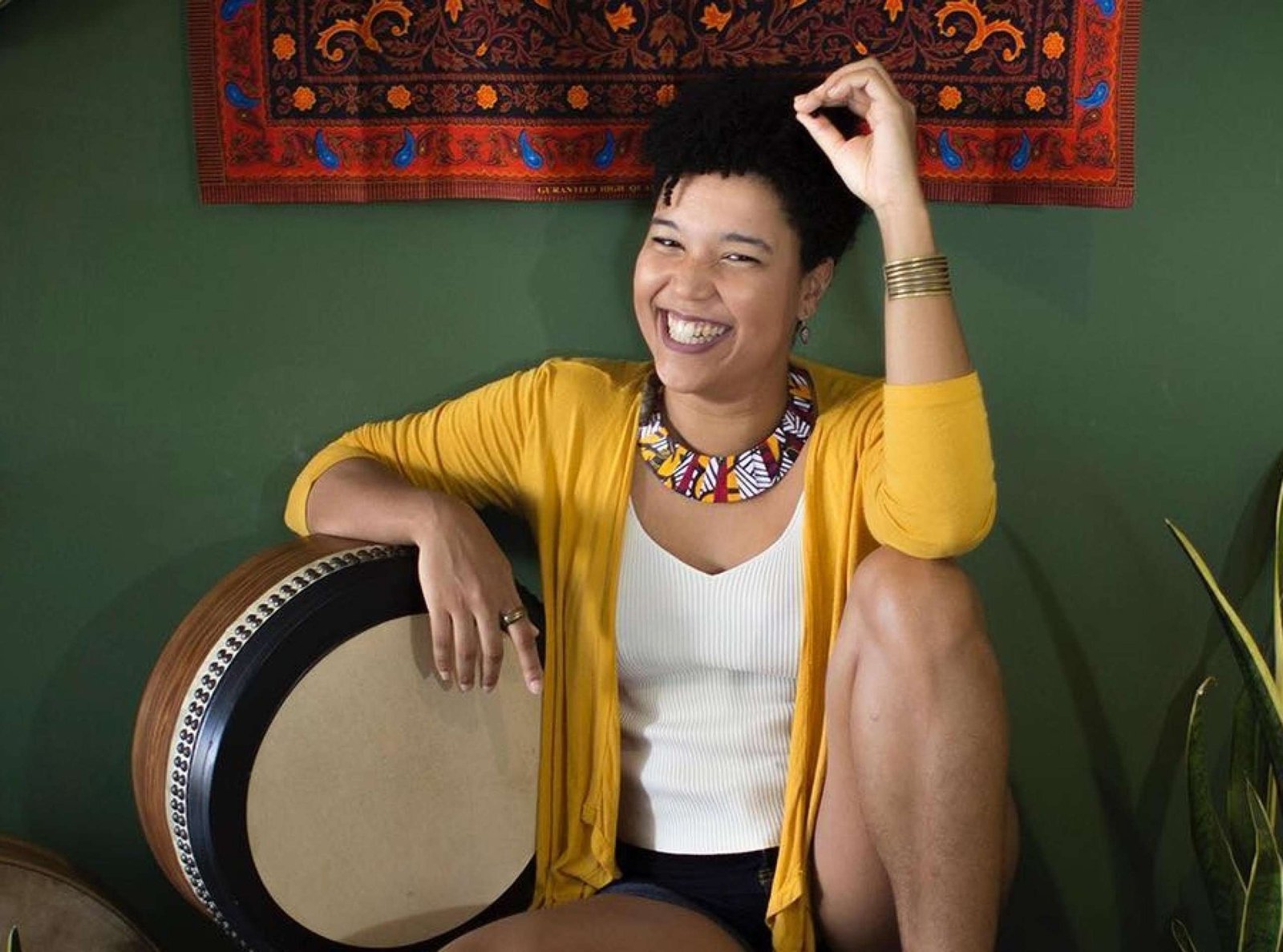 A instrutora Aishá Lourenço possui mais de 20 anos de experiência como percussionista, tendo se apresentado com artistas como Lia de Itamaracá, Johnny Hooker e Naná Vasconcelos. Além da percussão tradicional e eletrônica, atua com som direto, foley, criação de trilhas e finalização para audiovisual, unindo técnica, criatividade e vivência cultural.