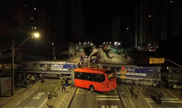 Ônibus biarticulado parte ao meio após colisão com trem em Curitiba