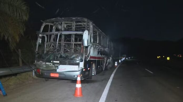 Um ônibus de turismo que transportava torcedores do Cruzeiro pegou fogo na noite deste domingo (10), na BR-040, próximo do bairro Jardim Canadá, em Nova Lima, na Região Metropolitana de Belo Horizonte.
