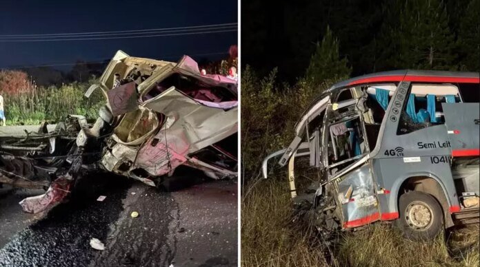 Duas pessoas morreram e outras 23 ficaram feridas em um acidente entre um ônibus fretado por uma família e um caminhão na noite de domingo (5) na PR-151, entre São Mateus do Sul (PR) e Três Barras (SC).