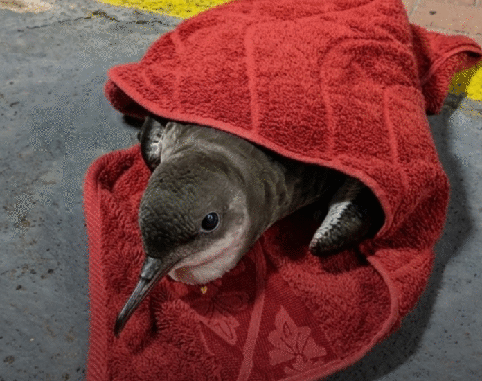 Os policiais identificaram o espécime como uma pardela-de-bico-preto, uma ave migratória famosa por percorrer rotas transoceânicas e que, no momento do encontro, aparentava estar bastante debilitada.