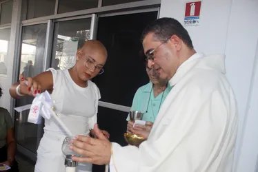 “Deus está em todos os lugares. Quando o padre veio me visitar, ele perguntou se eu já havia feito a Eucaristia, e, por conta do tratamento, eu não tinha conseguido. Mas ele me ofereceu a chance de receber a catequese e, com isso, me preparei durante um mês, com aulas virtuais todos os dias. A cerimônia foi muito emocionante. Senti, realmente, a presença de Jesus”, relatou Carine.