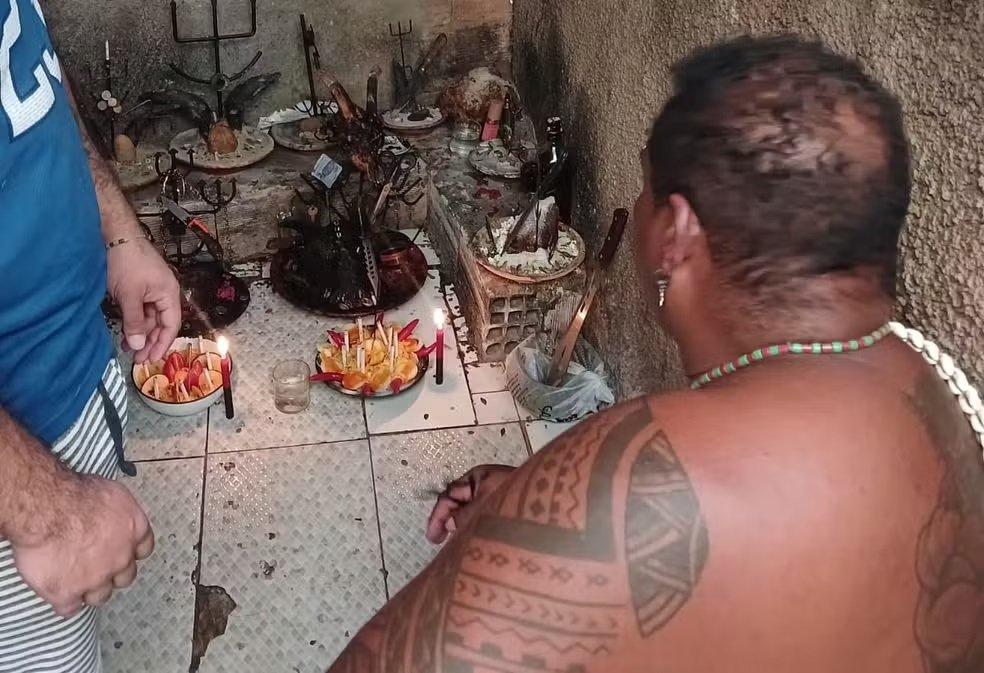 Uma arma foi apreendida junto com o pai de santo no terreiro. A vítima foi liberada do hospital e a previsão, no início da tarde, era que ela prestasse depoimento à polícia nos próximos dias.