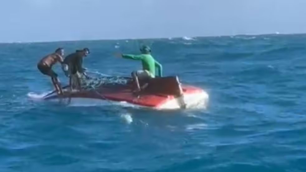 Pai e filho foram resgatados por um grupo de pescadores no Pecém, em São Gonçalo do Amarante, na Região Metropolitana de Fortaleza, na manhã deste domingo (16), após ficarem à deriva por cerca de 24 horas em alto mar em uma jangada virada. Eles estavam se alimentando apenas de sal e leite.