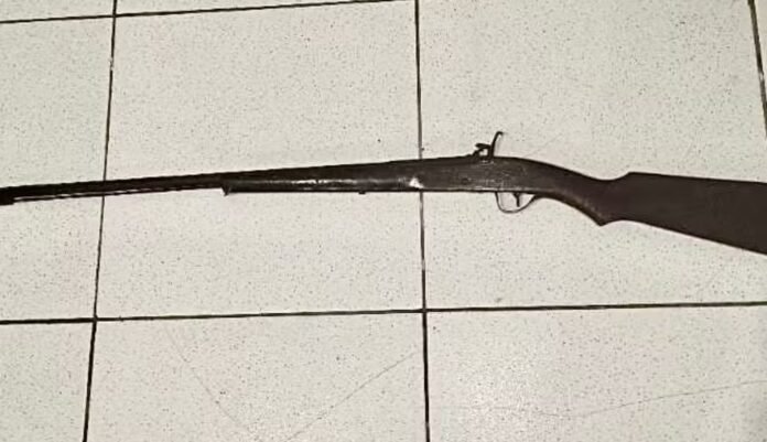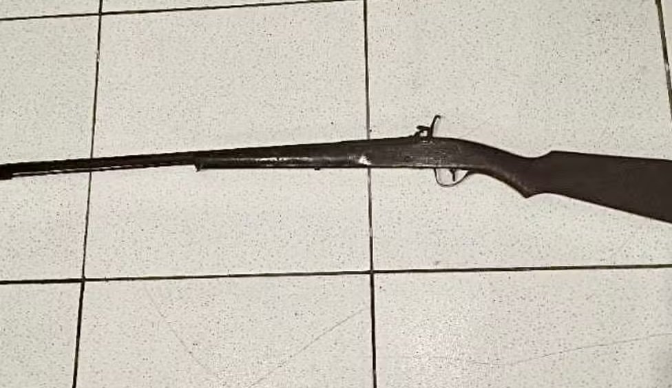Espingarda artesanal foi apreendida com o suspeito em Barrocas — Foto: Polícia Militar