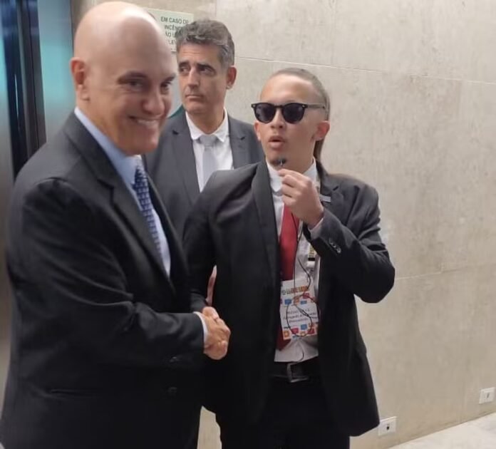 Alvo recorrente de ataques do governo de Donald Trump, o ministro do Supremo Tribunal Federal (STF) Alexandre de Moraes não deixou de lado a sua situação nos Estados Unidos ao se encontrar com o influencer Mizael Silva, humorista dono do personagem ‘advogado de Alexandre de Moraes’, em Brasília, nesta quarta-feira (13).