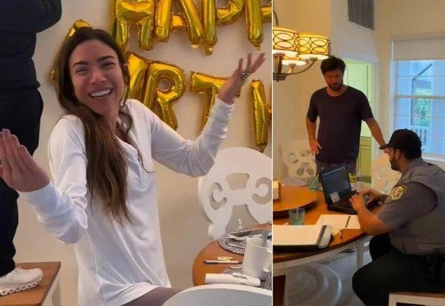 Nas redes sociais, Rebeca Abravanel mostrou a família organizando a decoração e comidas da celebração do aniversário da irmã enquanto Patricia e Fábio Faria faziam o boletim de ocorrência com um policial.