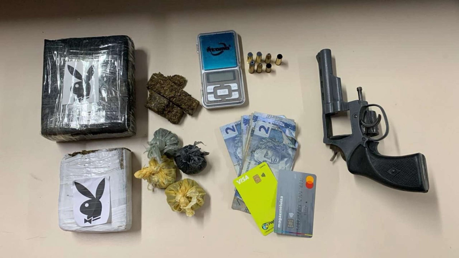 Segundo a Polícia Civil, 13 pessoas já foram presas. Também foram apreendidas duas armas de fogo e 11 munições, dinheiro em espécie, pés de maconha, além da droga pronta para comercialização. Os criminosos e os materiais apreendidos foram encaminhados para a Dracco.