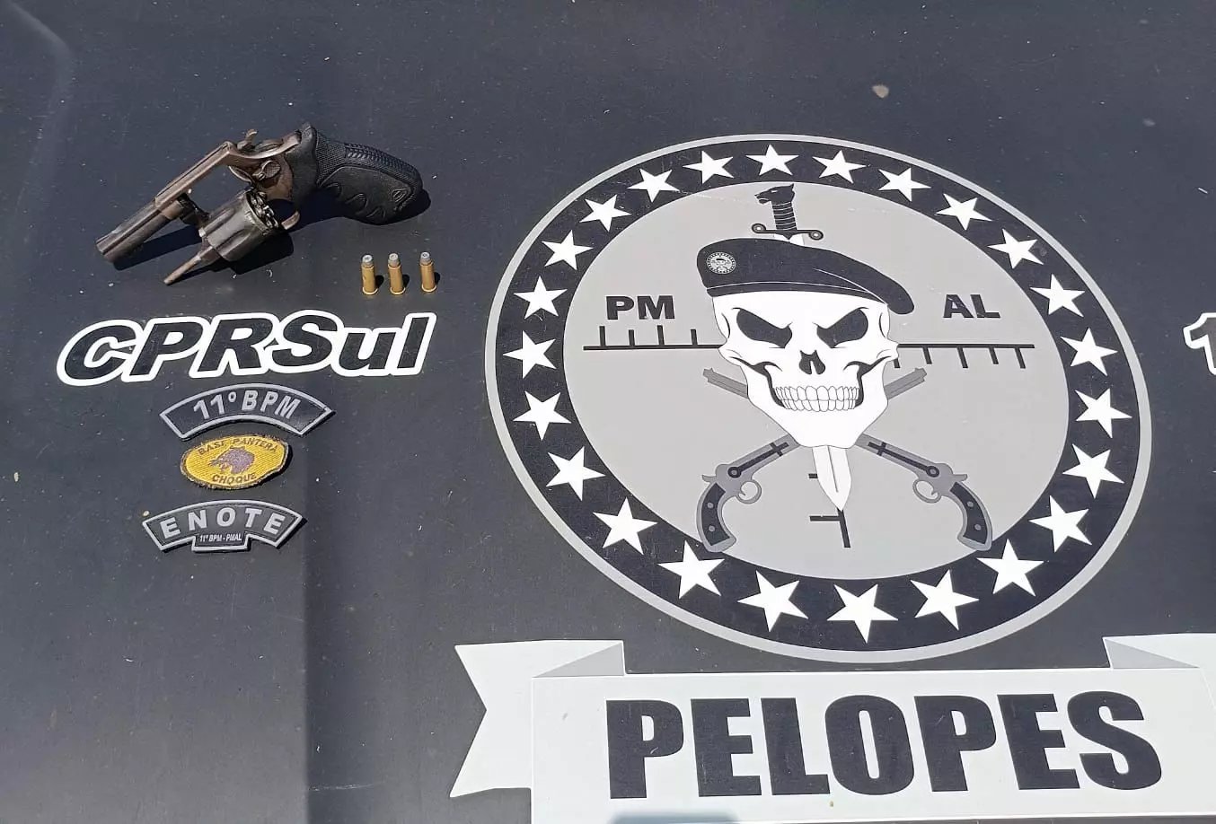 Ainda segundo a polícia, ao solicitar que a mulher descesse da van com seus pertences, a equipe realizou a busca pessoal e encontrou um revólver Taurus calibre 38, e três munições, dentro de uma mochila roxa que estava em posse da suspeita, que não teve o nome revelado devido a lei do abuso de autoridade.
