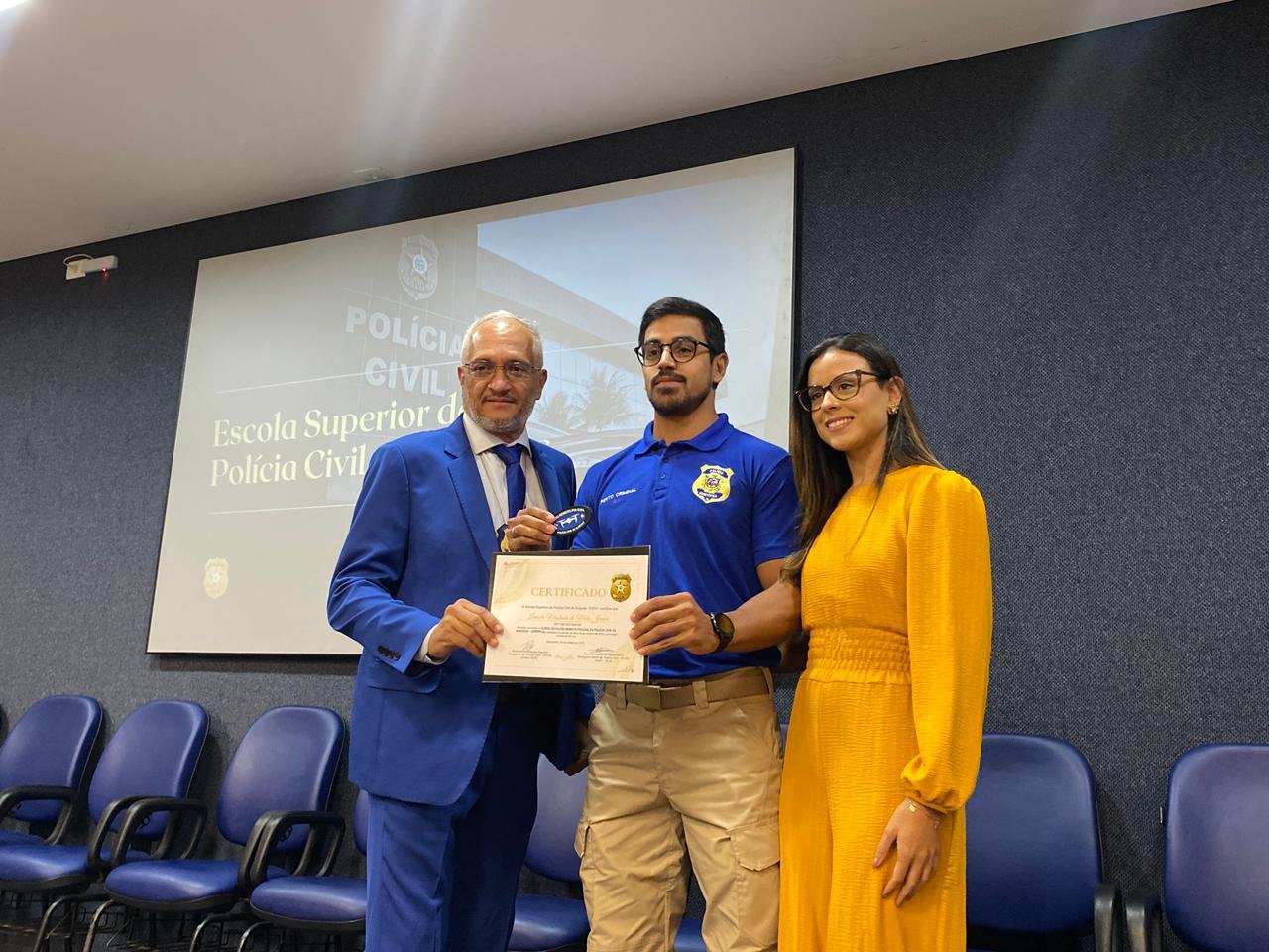 A Polícia Científica de Alagoas participou da cerimônia de encerramento do 1º Curso de Piloto Remoto Policial, que formou 19 servidores da segurança pública, incluindo o perito criminal Lincoln Machado, em pilotos de drones. O evento promovido pela Polícia Civil de Alagoas, aconteceu na terça-feira, 31 de março, e também contou com a presença do perito-geral Kleber Santana.
