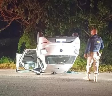 Após a identificação do carro, um Polo de cor branca, os agentes passaram a perseguir os ocupantes, que desobedeceram a ordem de parada, atirando contra os agentes da PRF, até que perderam o controle do carro e capotaram na rodovia.