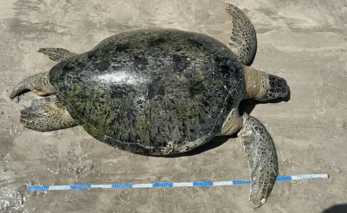 Na manhã deste sábado (16), um homem que navegava de lancha pela Praia de Ponta Verde, em Maceió, encontrou uma tartaruga-verde (Chelonia mydas) adulta, macho, morta após ficar presa em uma rede de pesca. Ao perceber que o animal estava enganchado e sem vida, ele retirou a tartaruga da água e a levou até a areia.