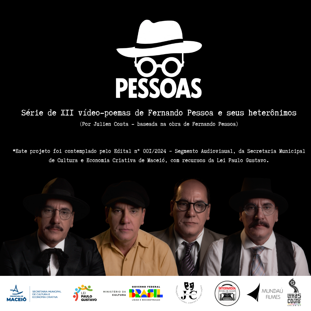 O ator e produtor cultural alagoano Julien Costa estreia no próximo dia 7 de maio de 2025, o projeto “PESSOAS”, uma série experimental, composta por 12 vídeo-poemas que homenageiam a obra do poeta português Fernando Pessoa e alguns dos seus célebres heterônimos. Unindo audiovisual, literatura, artes cênicas e música autoral, a produção propõe democratizar o acesso à poesia universal com uma abordagem contemporânea e acessível.