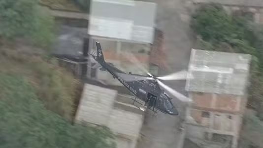 Piloto de helicóptero da polícia é baleado na cabeça durante voo no Rio de Janeiro