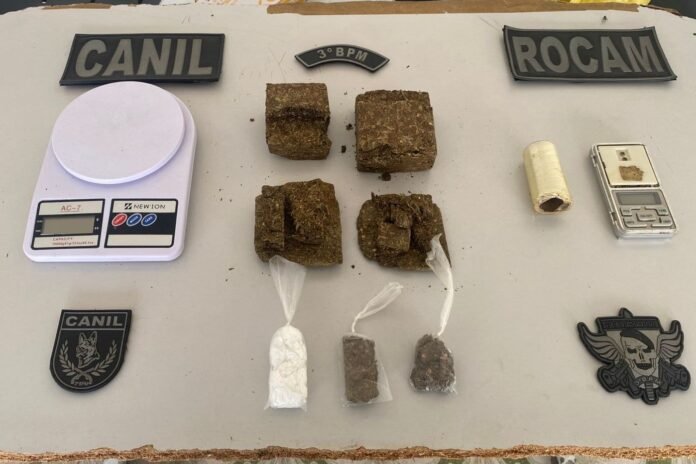 Com ele, foi encontrada uma pequena quantidade de crack e dinheiro no bolso. O adolescente indicou onde residia, em um imóvel ao lado do local da abordagem. Com a devida autorização, durante as buscas na residência, os policiais localizaram o restante do material, distribuído entre dois quartos.
