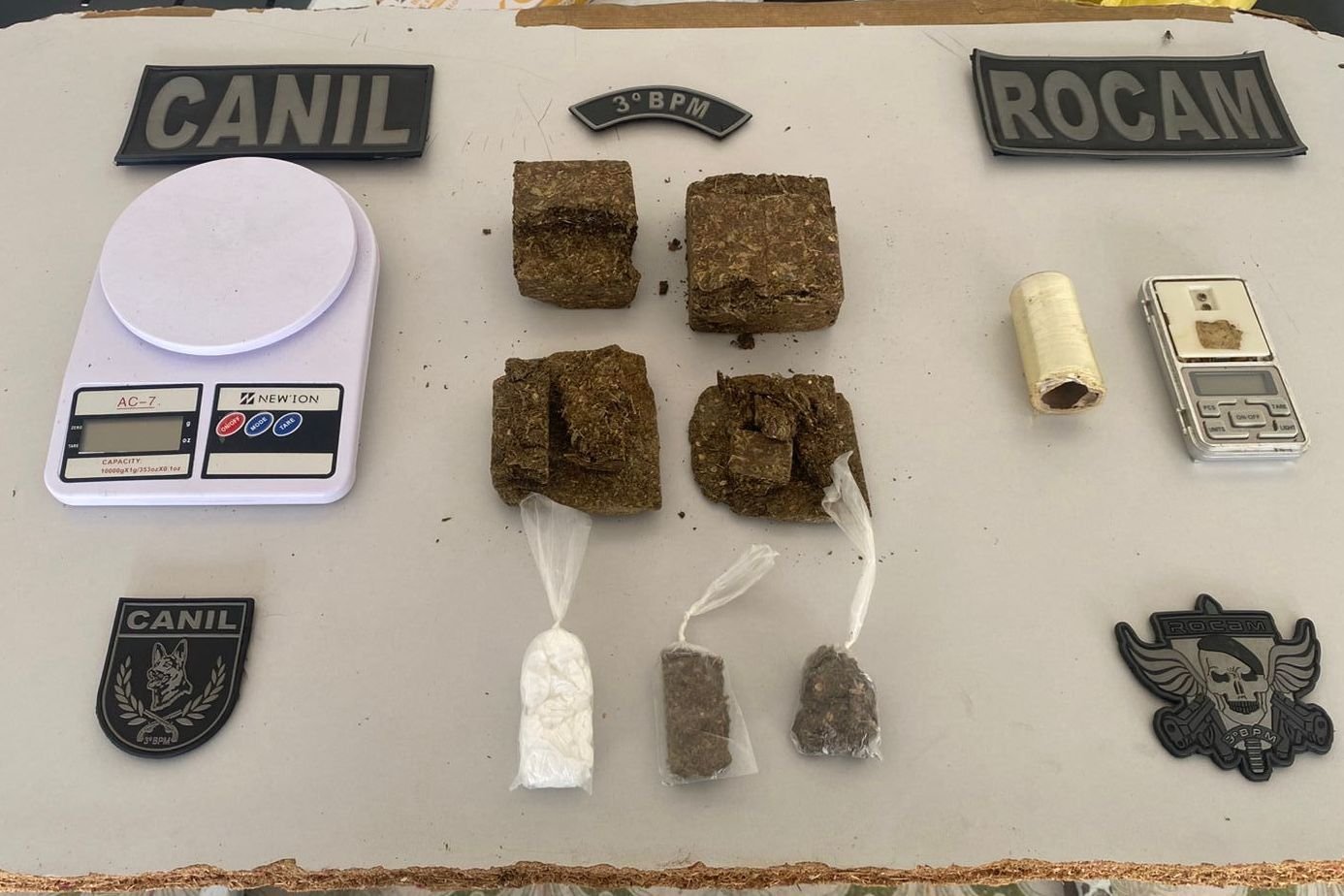 Por volta das 17h30 do mesmo dia, o 3º BPM apreendeu mais 260 g de maconha, 8 g de crack e 12 g de cocaína, além de uma balança de precisão e material para embalagem. Durante ação na zona rural de Girau do Ponciano, a Rocam, com apoio do Canil do 3º BPM, prendeu um indivíduo do sexo masculino, de 30 anos.
