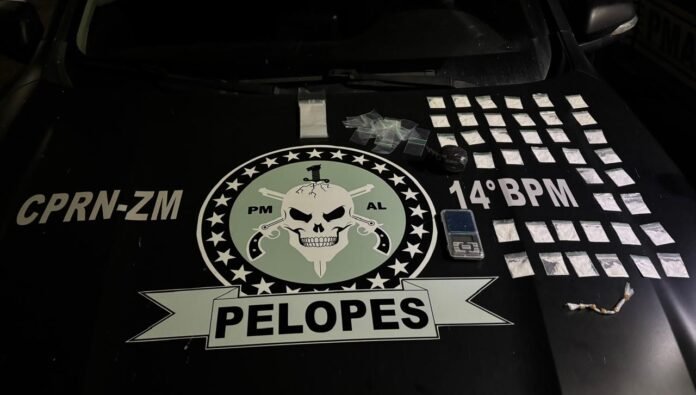 Durante a noite, em Campestre, o 14º BPM registrou um caso de tráfico de entorpecentes e apreendeu 62g maconha, cinco pedras de crack e 40g de cocaína. O fato aconteceu no bairro Paçoca. A equipe do Pelotão de Operações Policiais Especiais (Pelopes) foi informada pelo Serviço de Inteligência sobre um possível ponto de tráfico de entorpecentes na Rua Clóvis de Andrade.
