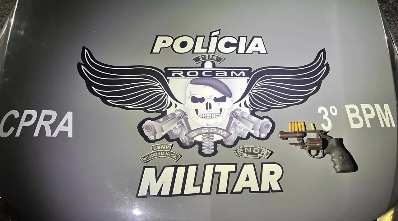 O homem foi alcançado e passou por uma busca pessoal. Com ele, os militares encontraram um revólver, além de 30 gramas de maconha e nove munições. Ao consultar o nome do indivíduo no sistema, foi constatado que ele possuía duas condenações judiciais a cumprir.