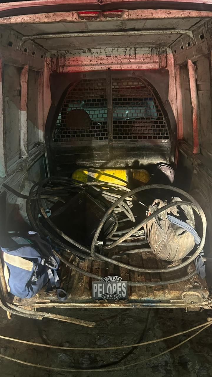 Dentro da Fiorino, foi encontrado todo o material subtraído da Estação de Policultura da Codevasf, além de outros itens de uso pessoal comumente empregados em crimes, como balaclavas, lanternas e luvas.