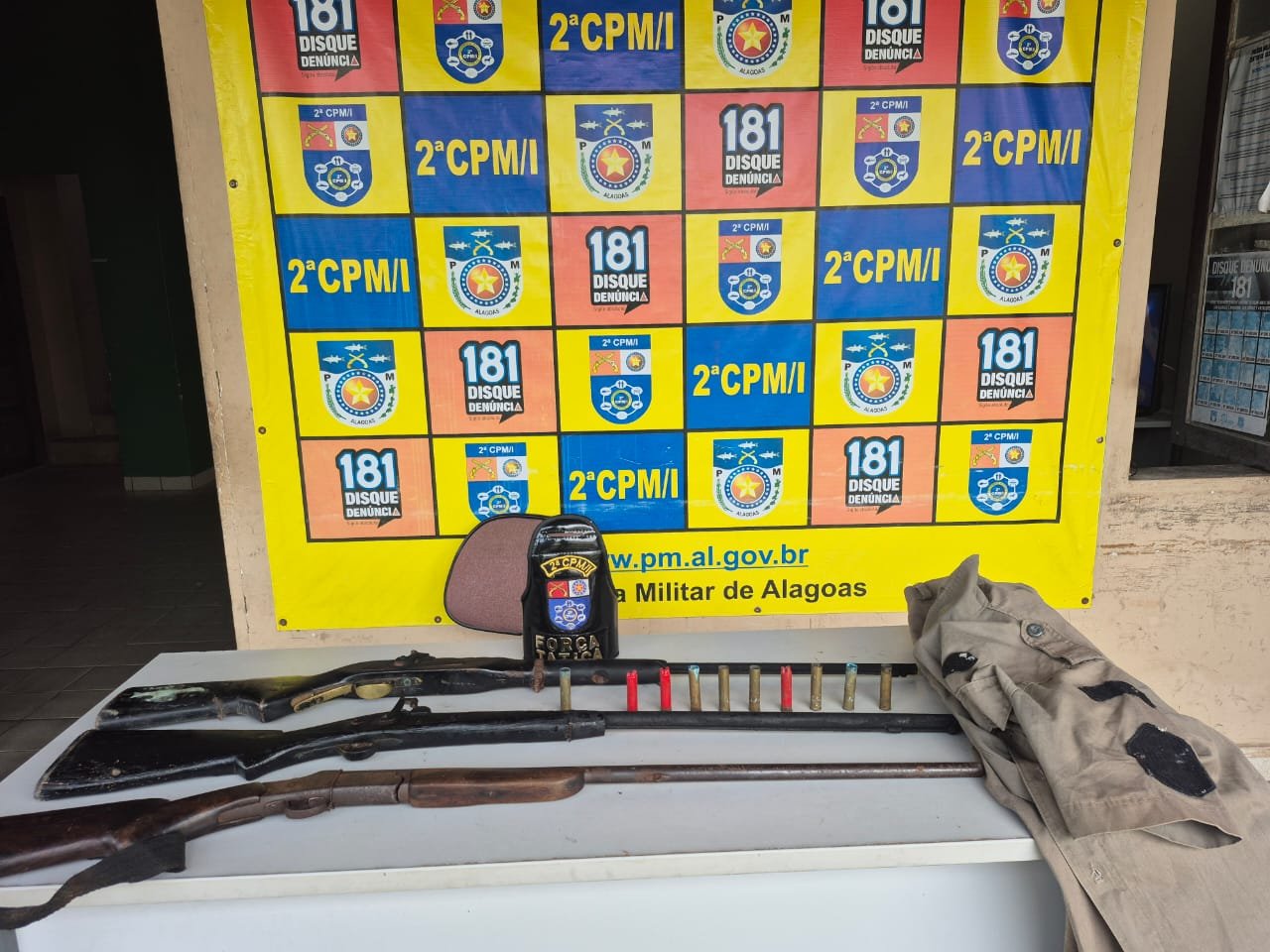 Uma ação da 2ª Companhia de Polícia Militar Independente (CPM/I), no início da tarde deste domingo (27), resultou na apreensão de três armas de fogo de calibre 32 e munições do mesmo calibre. Foi encontrada também uma farda completa da PM-AL (de modelo atualmente em desuso).