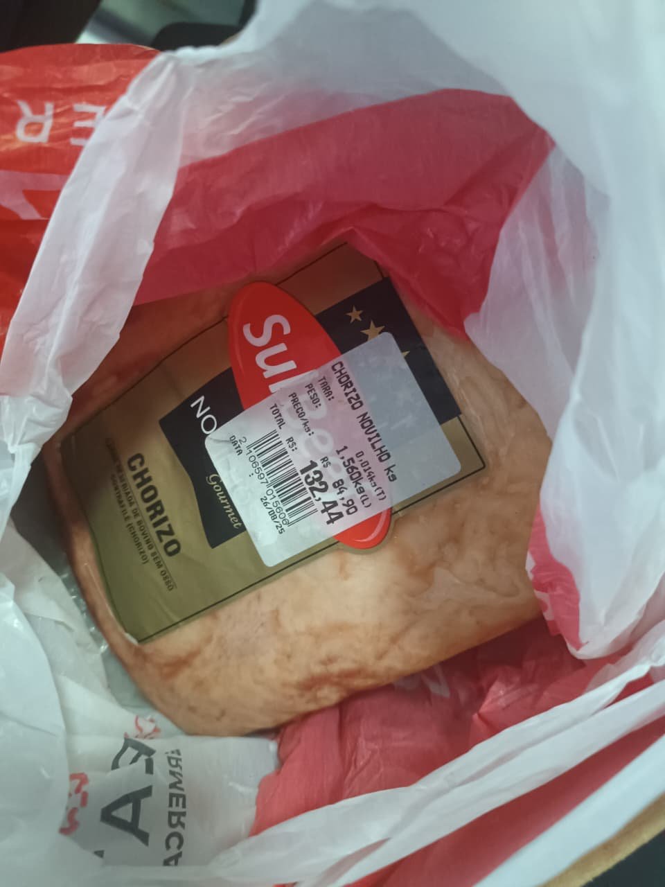 O indivíduo foi abordado e flagrado com um pedaço de carne avaliado em R$ 132,44, que estava escondido dentro de seu capacete.