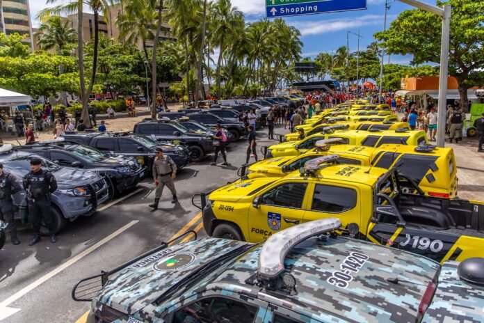 Entre as ações voltadas à Segurança Pública, a PM foi beneficiada com 111 veículos, incluindo quadriciclos e três buggies que serão empregados no policiamento motorizado em variados territórios e terrenos.