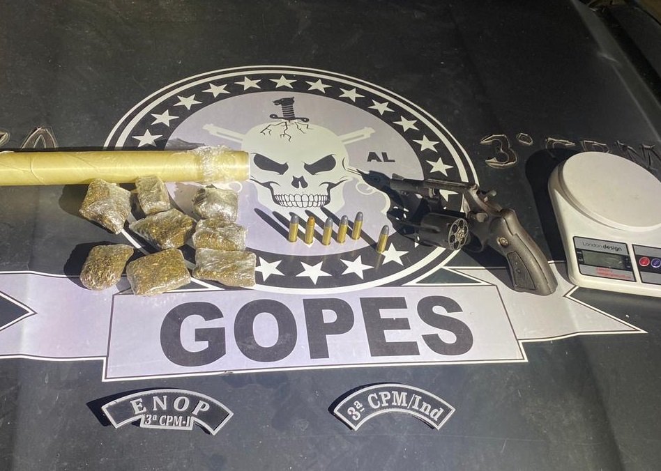 Já em Cajueiro, equipes da 3ª Companhia Independente prenderam um indivíduo portando um revólver calibre .38 e aproximadamente 170 gramas de maconha. O flagrante aconteceu no bairro Rocinha, após o suspeito tentar fugir de uma abordagem do Pelopes e se esconder num matagal às margens do rio Paraíba.