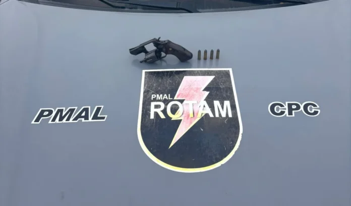 Ao chegar à área informada, o suspeito foi visualizado em via pública e abordado. Durante a revista pessoal, os policiais encontraram quatro munições de calibre .38 no bolso do indivíduo. Em seguida, foram realizadas buscas no interior da residência, onde foi localizado um revólver do mesmo calibre, escondido no imóvel.