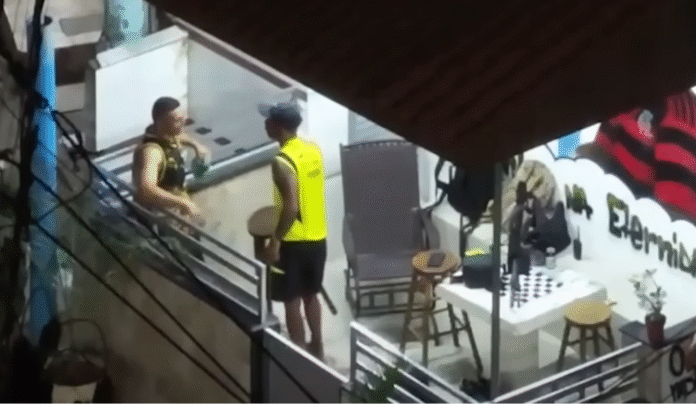 Nas imagens, é possível ver o agente público, vestindo regata preta, e o chefe do tráfico, de blusa amarela. Eles demonstram intimidade, trocam sorrisos e conversam sem qualquer receio, mesmo diante de outros dois criminosos armados, seguranças de Cachulé.