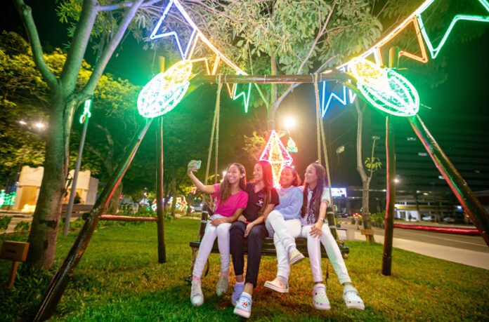População aproveita decoração temática da Vila de São João no Parque do Centenário. Foto: Ascom Ilumina