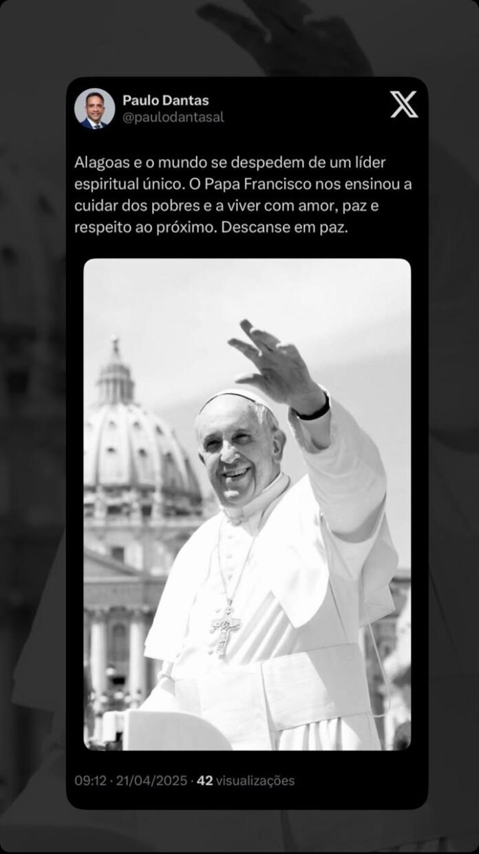 Nas redes sociais, o governador de Alagoas, Paulo Dantas também prestou sua homenagem ao pontífice: