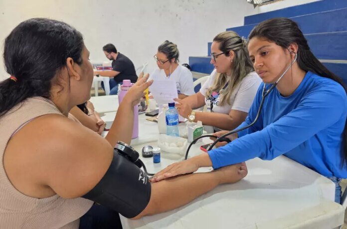 As equipes da Secretaria de Saúde estão realizando diversos serviços, como aferição de pressão arterial, medição de glicemia, curativos, avaliação nutricional, ventosaterapia com fisioterapeuta, vacinação, testes rápidos e consultas com médico clínico.