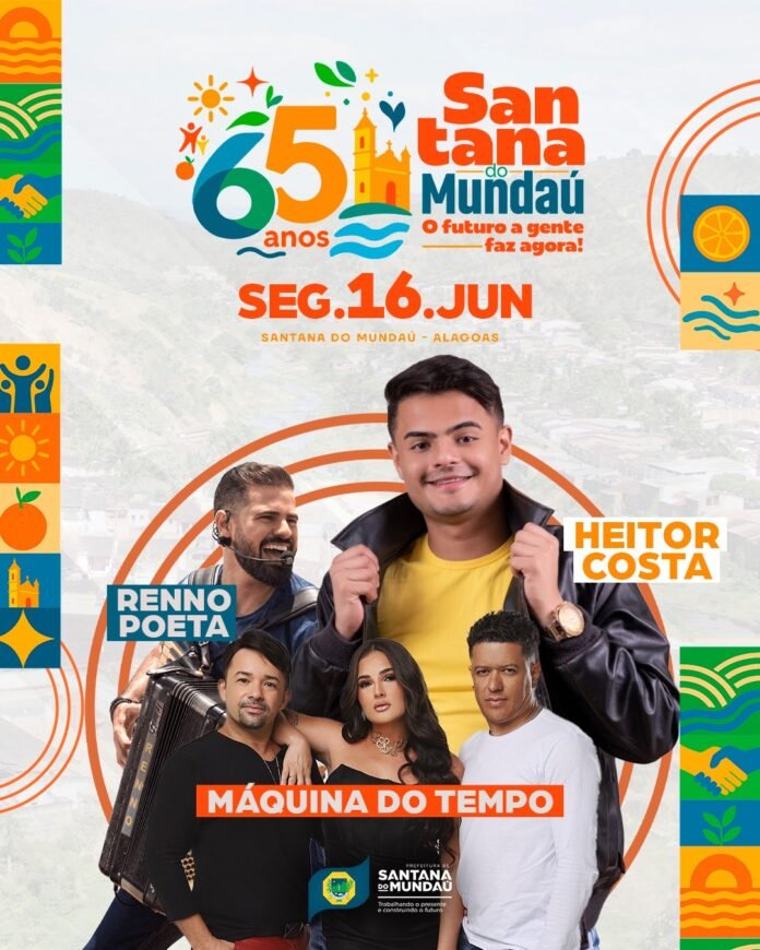 Em junho, o município de Santana do Mundaú completa 65 anos de história, e, para celebrar, a prefeitura de Santana do Mundaú, acaba de anunciar a programação artística. No dia 16 de junho, os cantores Heitor Costa, Renno Poeta e a banda Máquina do Tempo, subirão ao palco da Praça do Areado a partir das 22h.