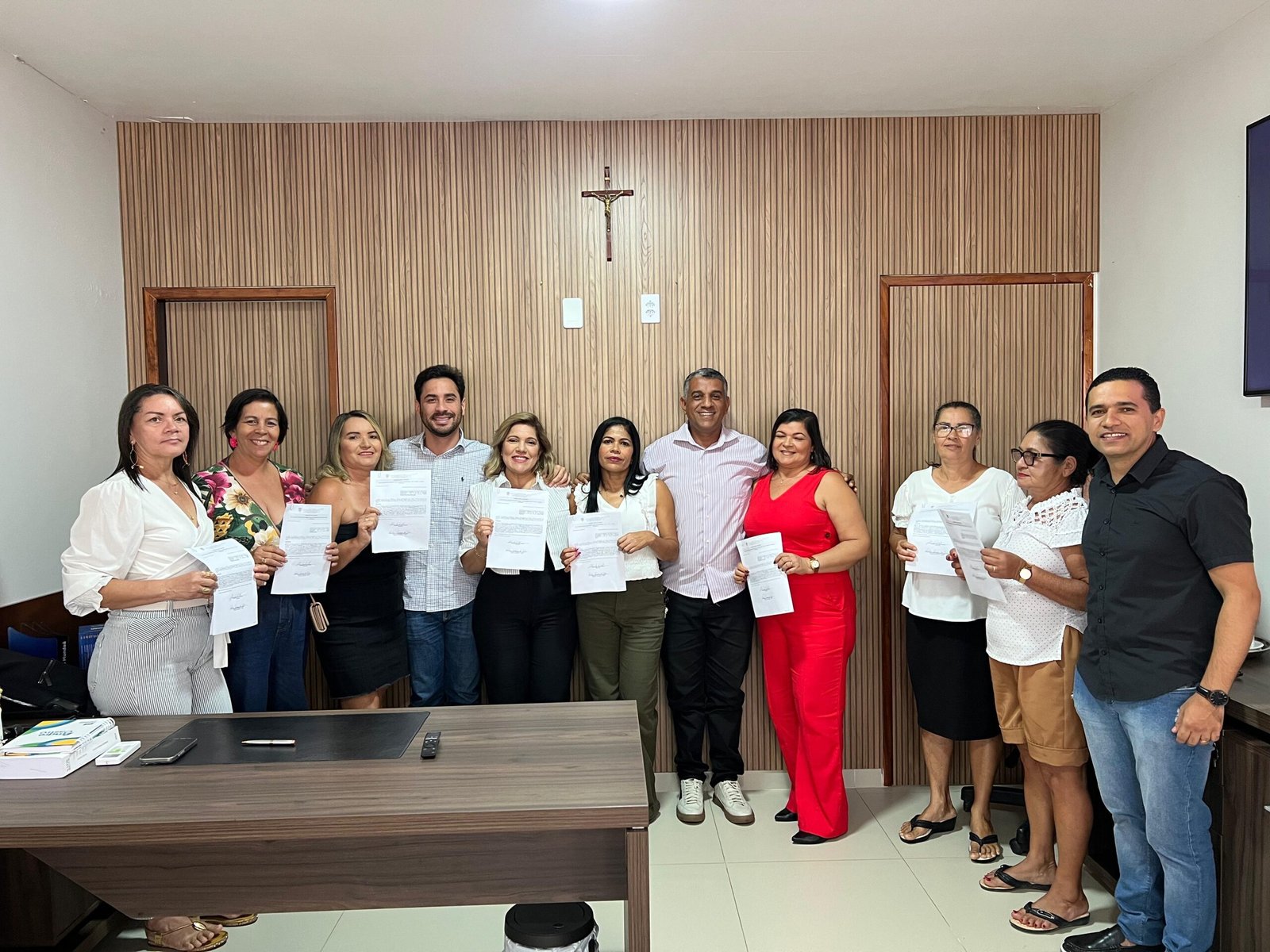 Nesta quarta-feira (7), as servidoras do município de Santana do Mundaú, Neide Silva, Josefa Ferreira, Cícera Domingos, Maria Célia da Silva Barros, Rosely de Lima, Maria Eleuza Vicente, Severina da Silva e Jaciara Batista, foram recebidas pelo prefeito André Castro em seu gabinete, para a confirmação da concessão de suas aposentadorias. O presidente do FUPA – Fundo de Pensões e Aposentadorias, Naelson Ferreira, também participou do ato.