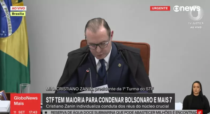 A Primeira Turma é composta pelos ministros Alexandre de Moraes (relator), Flávio Dino, Luiz Fux, Cármen Lúcia e Cristiano Zanin, presidente do colegiado.