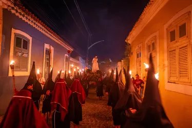 Os participantes, vestidos com roupas típicas e carregando tochas, seguiram o trajeto que rememora o momento da prisão de Jesus Cristo, simbolizando o sofrimento e a reflexão cristã. A procissão é um dos eventos religiosos mais esperados da região e é marcada pela grande devoção dos participantes, que se uniram em oração e cantos.