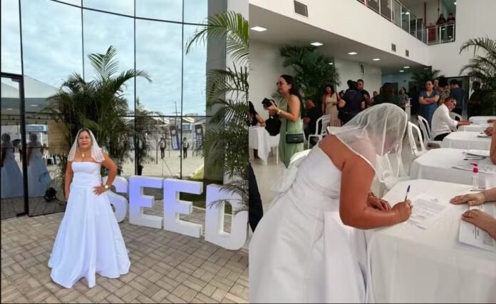 “Falei que no dia em que tomasse posse no concurso do estado, entraria vestida de noiva. Todo mundo riu, mas disse que eles iam ver”.
