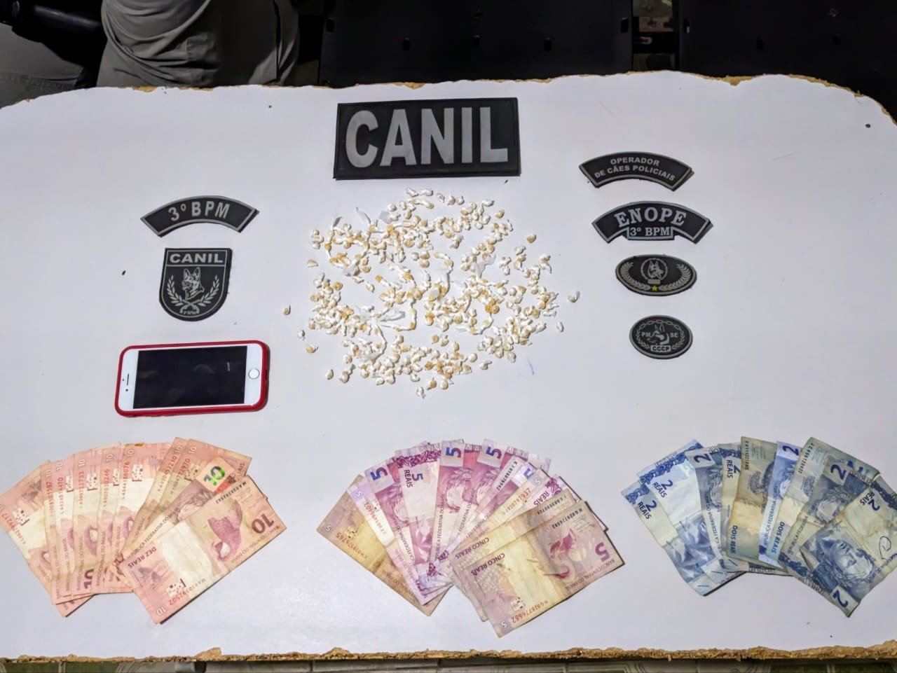 Policiais da guarnição de Canil do 3° Batalhão da PM apreenderam 295 pedras de crack com um adolescente e um homem no bairro Alto do Cruzeiro, em Arapiraca, na madrugada desta sexta (1).