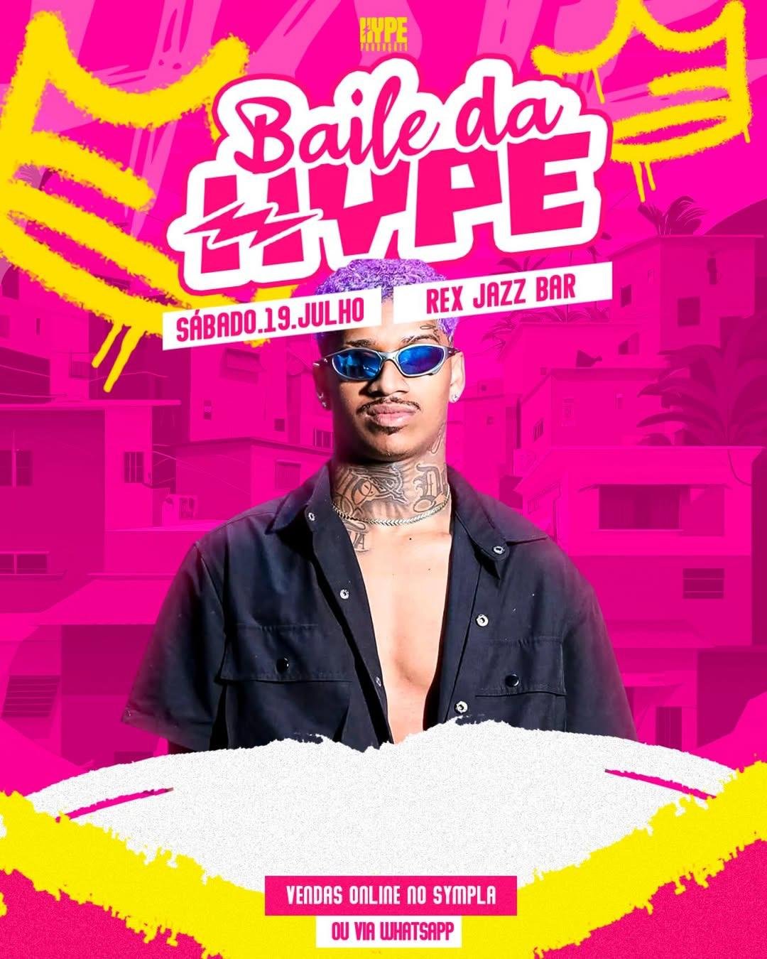Já no sábado, 19 de julho, é a vez do Baile da Hype, que chega com sua line-up completa e promete agitar a noite com muito hip hop, trap e funk. Entre as atrações confirmadas estão DJ Gil, DJ Dallas, Vitor Beat e Mano Dembelé, a partir das 22h.