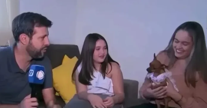 No vídeo, Guilherme aparece na sala da residência conversando com as tutoras da pet. No entanto, ao tentar se aproximar do animal, a cadela parte para cima do repórter com uma enorme fúria. “Calma, calma, Cacau”, disse o repórter.