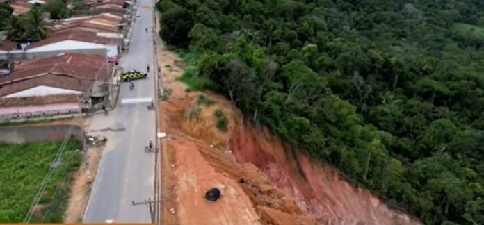 Parte da via foi interditada por cotna do avanço da Voçoroca. Fonte: TV Pajuçara