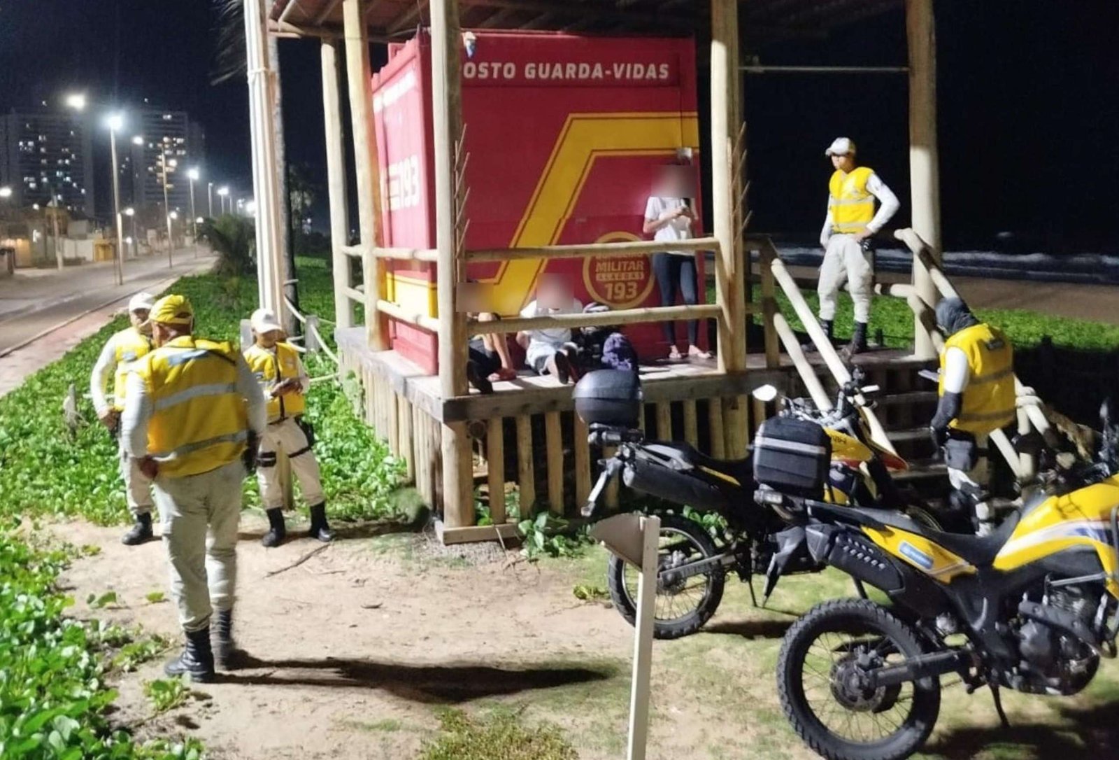 A guarnição decidiu realizar a aproximação ao notar que os suspeitos estavam subindo as escadarias do posto de guarda-vidas do Corpo de Bombeiros localizado na orla do bairro, que já estava fechado. Durante a tentativa de fiscalização, os dois homens resistiram inicialmente à abordagem, mas os agentes utilizaram técnicas de contenção para garantir a segurança da operação e realizar a revista.